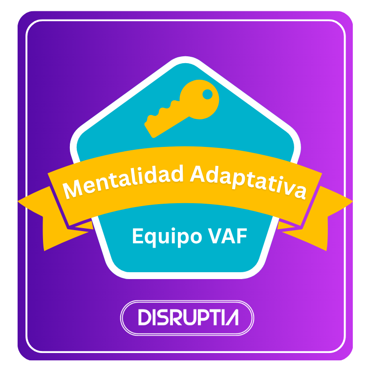 Con esta insignia, Disruptia certifica que finalizaste con éxito tu ruta de Mentaliad Adaptativa del equipo VAF